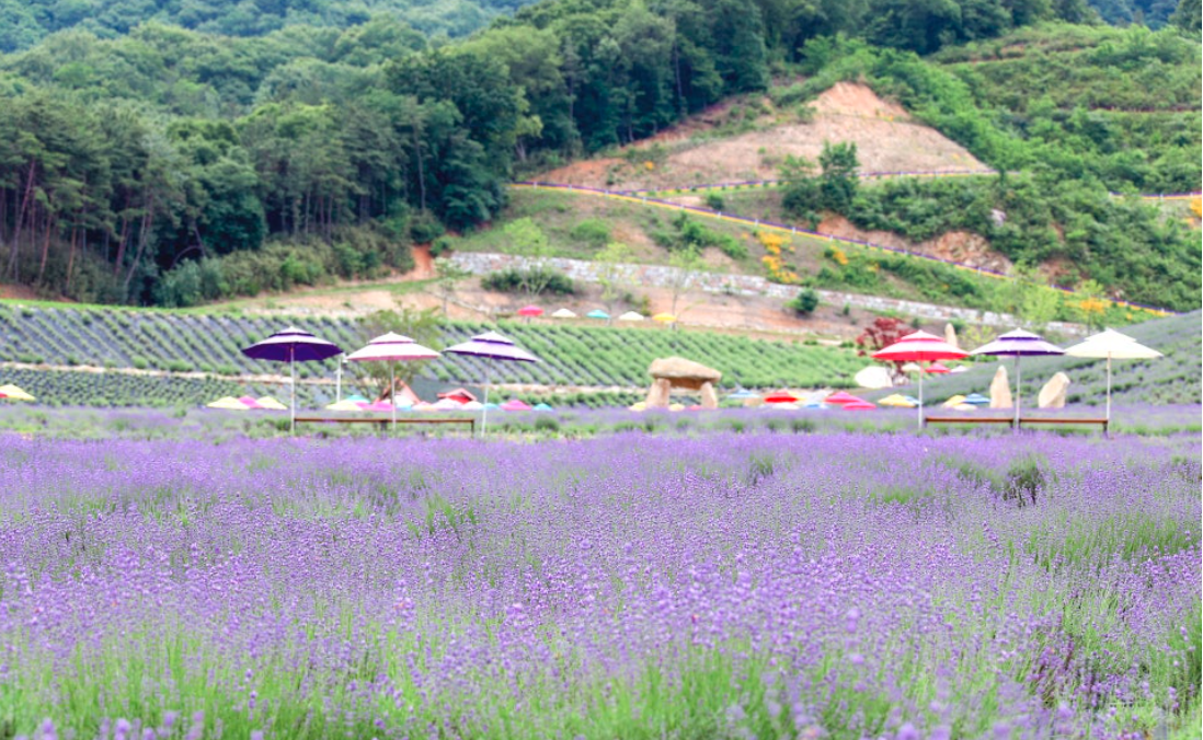 전북 정읍에 위치한 ‘허브원’은 국내 최대 규모의 라벤더 정원으로, 매년 6월 중순이면 보랏빛 라벤더 물결이 장관을 이룹니다.
