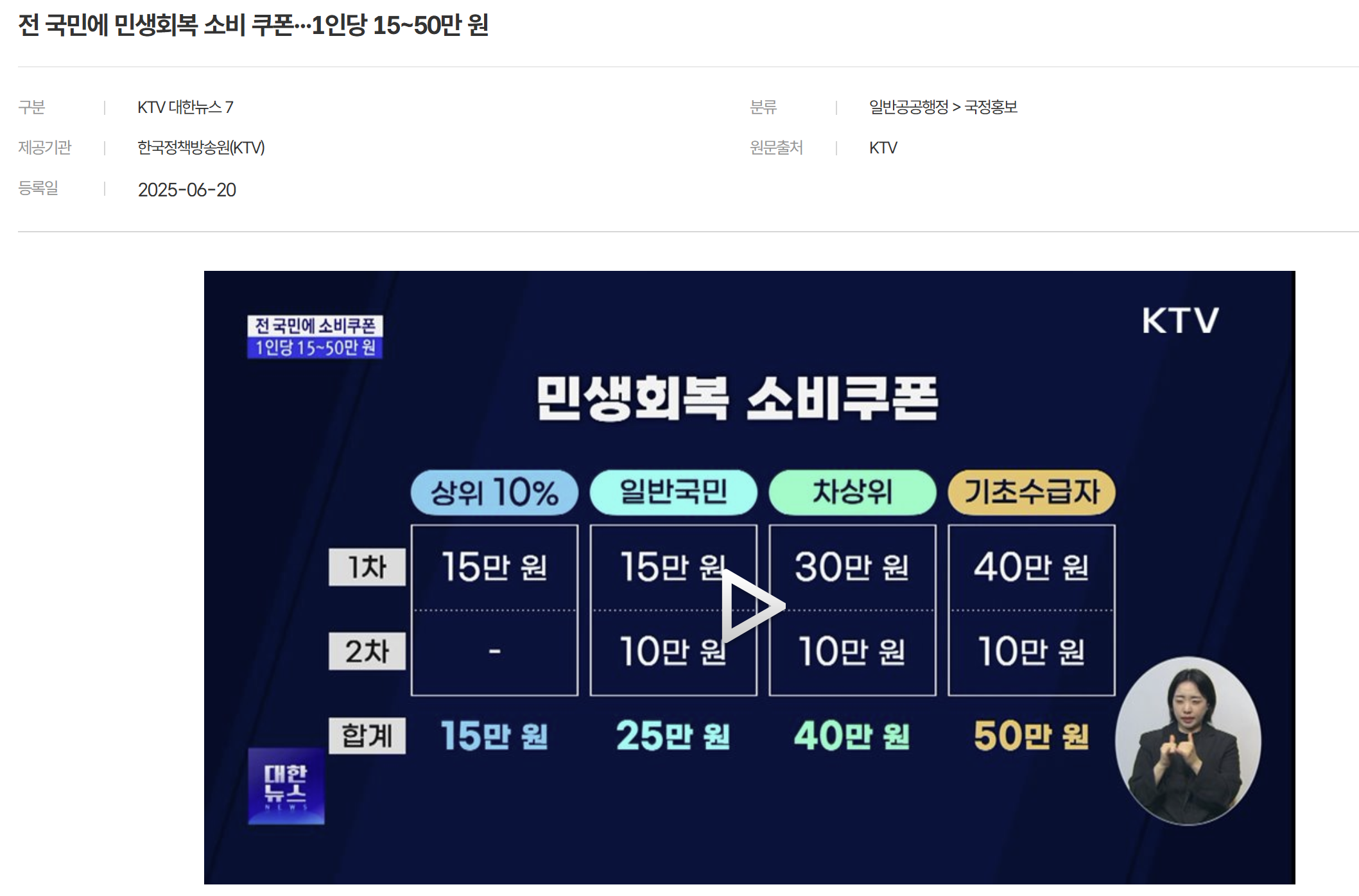 | 일반 국민 | 25만 원 |