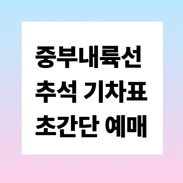 민족 대명절 추석을 앞두고, 2025년 코레일 중부내륙선 승차권 예매 일정과 방법, 꿀팁, 시간표, 실패 사례 및 자주 묻는 질문(FAQ)을 한눈에 확인할 수 있도록 완벽하게 정리했습니다.
